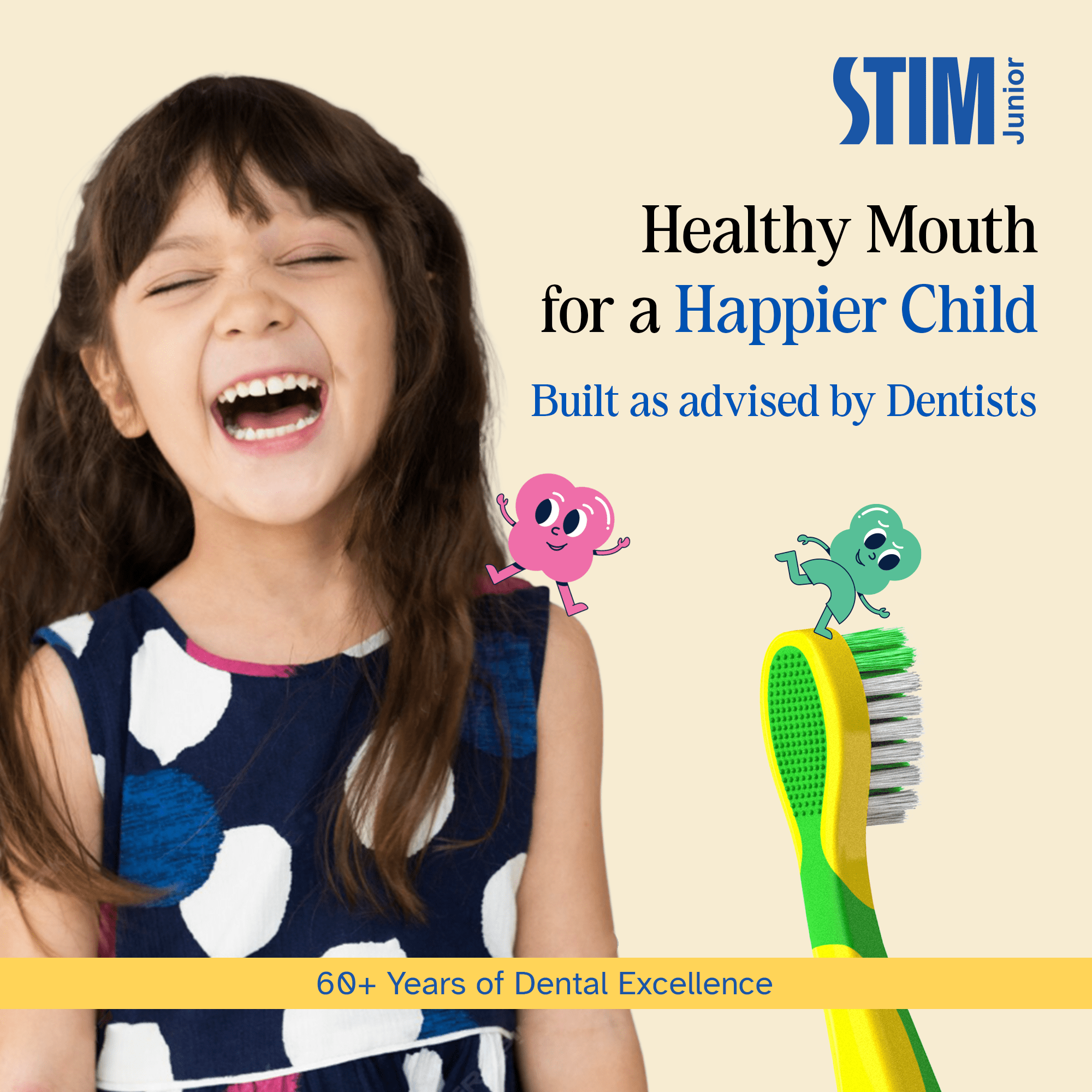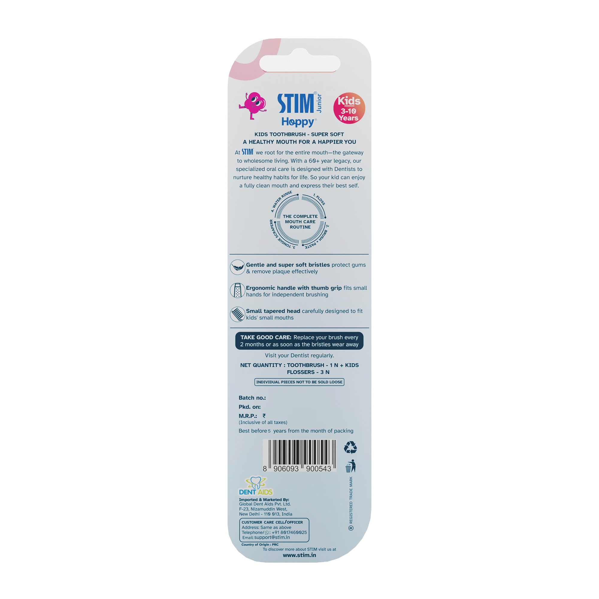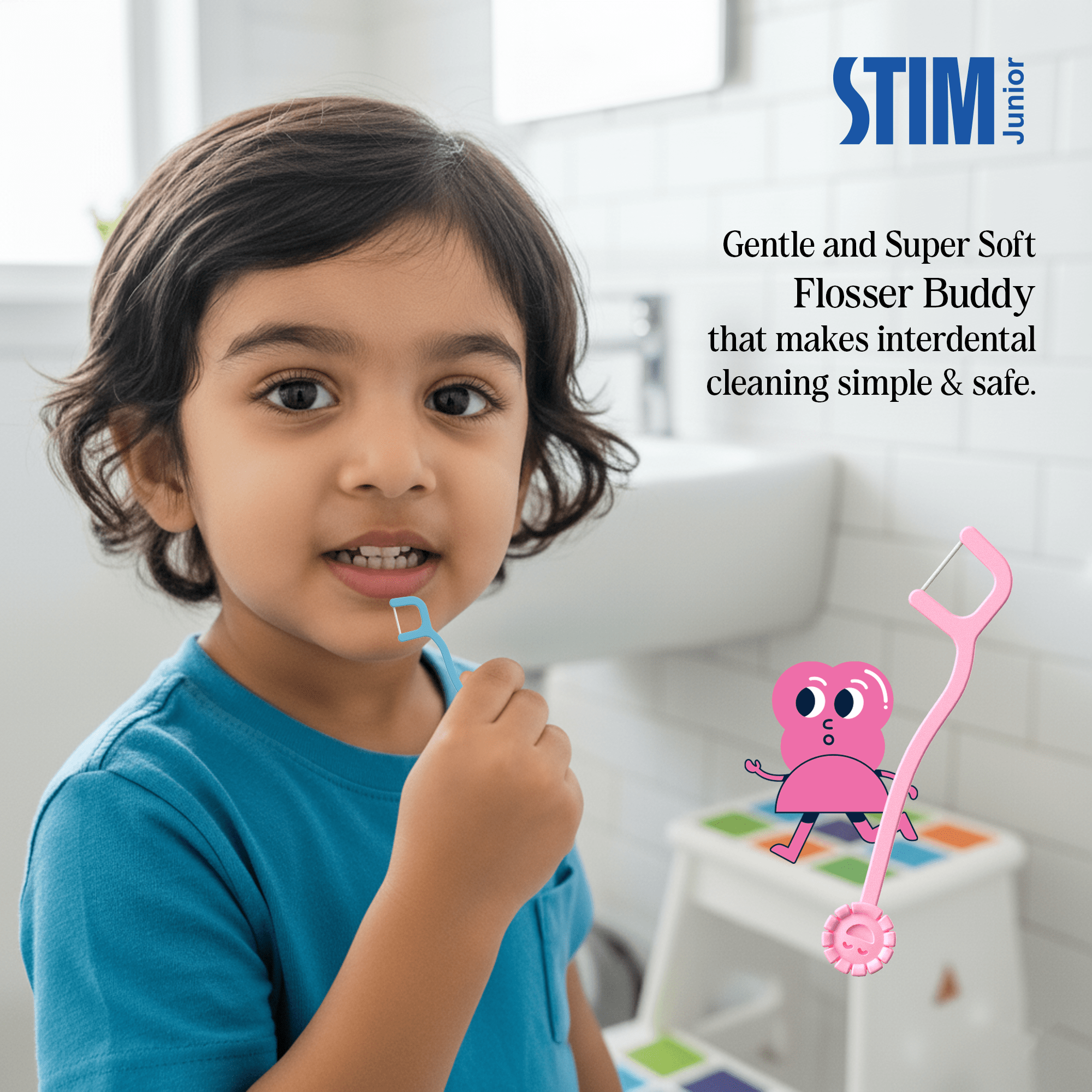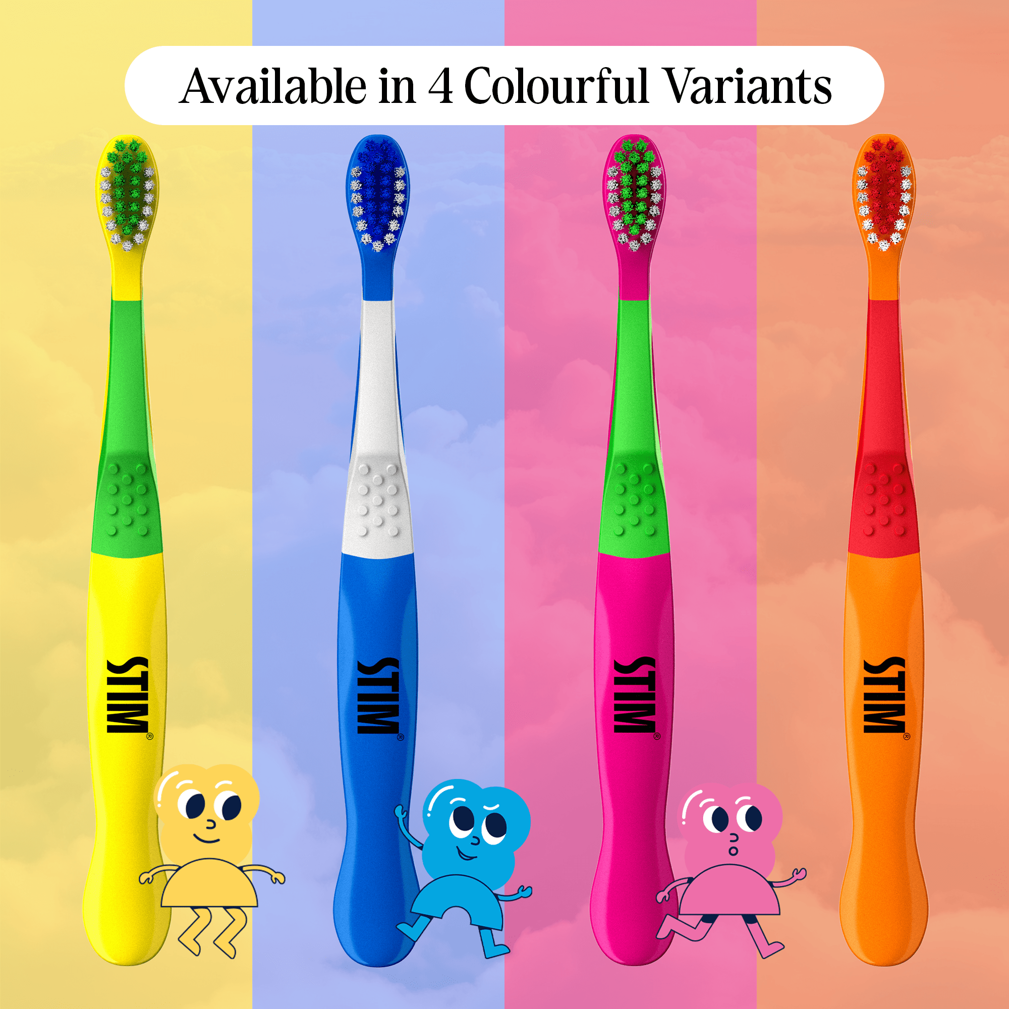 The STIM Junior Toothbrush, designed for ages 3 to 10, features a small tapered head, soft bristles, and an ergonomic handle with a thumb grip to empower your child’s independent brushing.